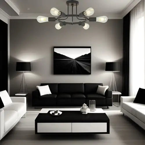 6 Lamps Modern Sputnik Lamp Semi Recessed Chandelier Black