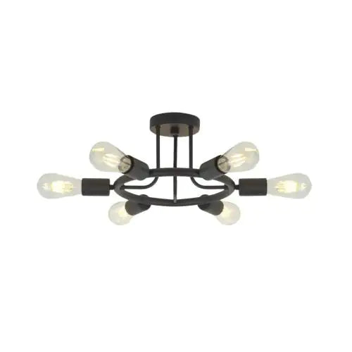 Multifunctional black finish six-lamp semi-recessed chandelier, suitable for all kinds of room decoration; Rustic, industrial and minimalist design all in one.