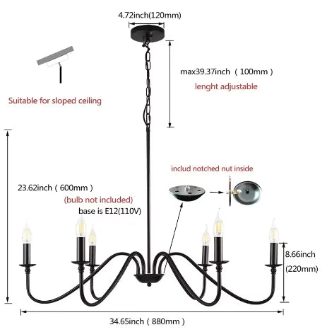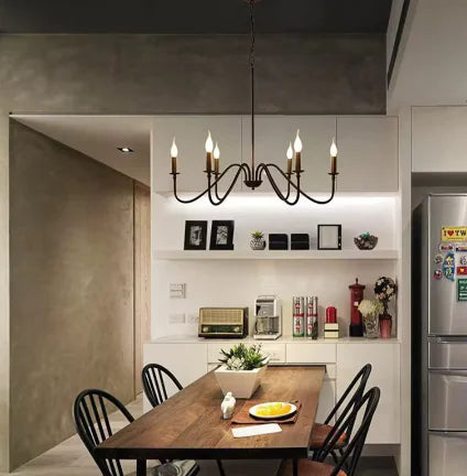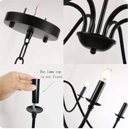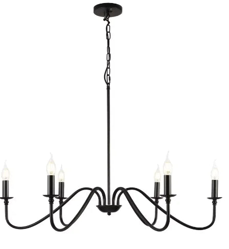 - Design: Classic candle-style chandelier with a black finish, offering a modern farmhouse aesthetic.